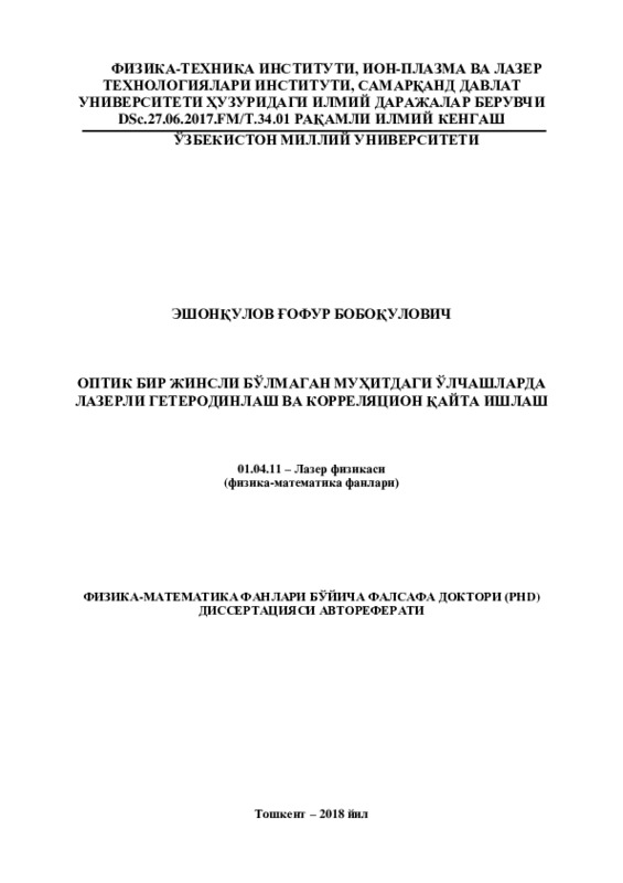 Целью исследования является разработка методов измерения структурных характеристик турбулентной атмосферы и дисперсных сред с совершенствованием экспериментальных методов лазерного гетеродинирования и коррелометрии.