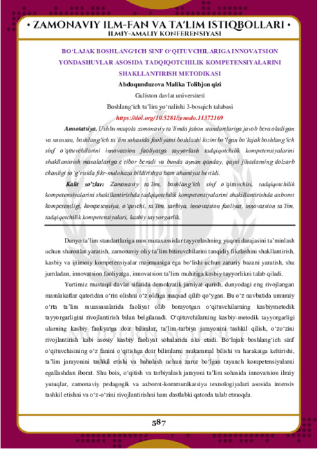 Степень внедрения и экономическая эффективность: отдельние предложения и рекомендации диссертанта приняты к внедрению хокимиятами Бухарского вилоята и города Газли, учебной частью БухГУ.