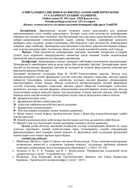 И.Ф. Салохитдинова, К.У Сафарбаева, Г.Н Турдалиева, Ихтиёр Маматкулов