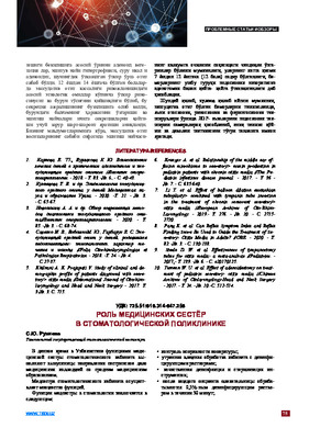 • В данное время в Узбекистане функциями меди цинской сестры стоматологического кабинета вы полняют выпускницы направления сестринское дело медицинских колледжей со средним медицинским образованием.