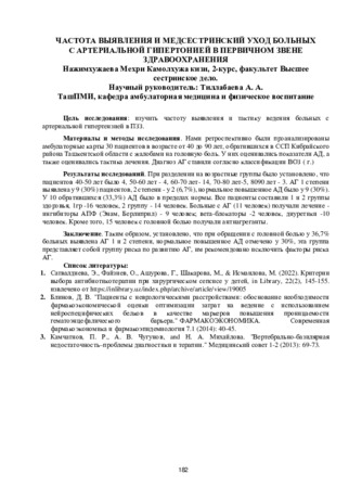 • Потребность в комплексном уходе за пациентом с артериальной гипертонией (АГ) очевидна, и в процессе лечения, и профилактики осложнений важную роль играет медицинская сестра, которая его непосредственно осуществляет.