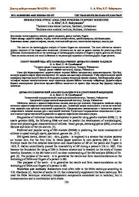 • Обобщены данные о дерма гоглифичееком анализе пальцев рук человека. Определены наиболее информативные дерматоглифические показатели пальцев рук. Показатели можно использовать в качестве генетических маркеров при прогнозе спортивной одаренности. Сформированы рекомендации о технологии дермато-глифичсского анализа пальцев рук в спортивной генетике. Существуют определенные национальные и расовые отличия в фенотипической выраженности дерматоглифических пальцевых узоров.
