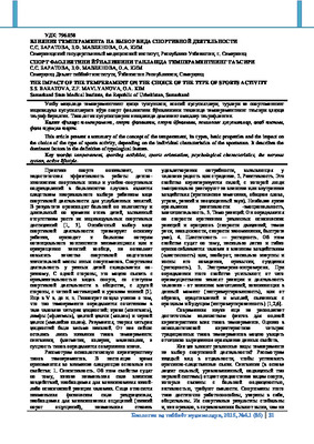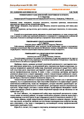 • В данной статье представлено обобщение понятия темперамента, его видов, основных свойств и влияния на выбор вида спортивной деятельности в зависимости от индивидуальных особенностей спортсмена. Описаны доминирующие факторы в определении типологического признака.