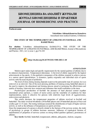 Уровень нагрузки во время тренировки отчасти зависит от типа личности человека: экстраверт он или интроверт. Одной из наиболее актуальных проблем подготовки юных баскетболистов является необходимость совершенствования учебно тренировочного процесса направленного на повышение эффективности и качества обучения. Интроверты обладают сдержанностью и выдержкой, которые вселяют в команду уверенность в своих силах.Психологические особенности футбола: наличие жесткого физического контакта, совместно взаимосвязанный характер действий партнеров, разнообразие двигательных действий и вариативность условий их выполнения – делают его привлекательным для лиц с относительно высокими показателями агрессивности, экстраверсии и пластичности.