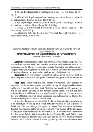 • Sport selection is the basis for achieving results in sports. This article discusses the selection, namely selection and selection, which is a necessary tool for the development of sports. Providing expertise on ways to apply high-yielding techniques in our industry, based on the experience of developed countries and in the development of this industry