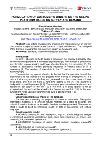 This article envisages the creation and maintenance of an internet platform that accepts software orders based on supply and demand. The main goal of the theme is to guarantee the maximum ideality of the client’s work.