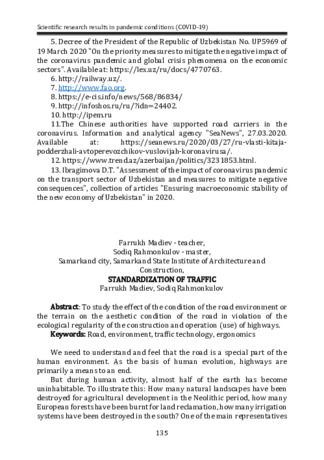 Transport va turizm oʻrtasida yaqin aloqalar mavjud boʻlishi vaqt oʻtishi bilan oʻzgargan turizmning rivojlanishida turli xil transport turlari turli rol oʻynaydi. Ushbu maqolaning maqsadi Oʻzbekiston temir yoʻllarining turizmni rivojlantirishdagi tanlangan muammolarini tahlil qilish va temir yoʻllardan turizm maqsadlarida foydalanishning zamonaviy setvislarini yaratishdan oborat. Dastlab, transport va turizm oʻrtasidagi munosabatlar bayon qilinadi va qisqacha Oʻzbekistonda sayyohlik yoʻnalishisifatida tahlil qilinadi. Oʻzbekistonda temir yoʻl va temir yoʻl transportining oʻrni baholanadi (Oʻzbekistondagi temir yoʻllarning holati, temir yoʻl infratuzilmasi, temir yoʻl transportini tashkil etish, umumiy foydalanishdagi temir yoʻl transporti tarifi va bir qancha mintaqaviy yoʻllarda yoʻlovchi tashish harakatining faoliyati). Shuningdek Oʻzbekistondagi temir yoʻllar va ulardan turistik maqsadlarda foydalanish yoʻllari bilan tanishtiriladi. Turizmni rivojlantirish uchun temir yoʻllardan foydalanishning tanlangan soʻngi namunalariga eʻtibor qaratilgan.