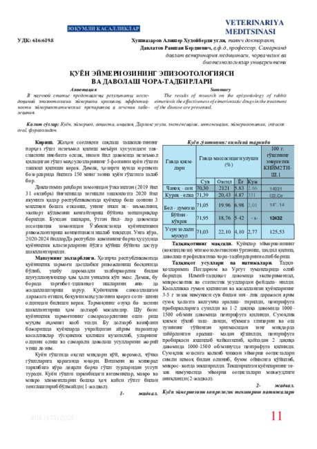 • В научной статье представлены результаты исследований эпизоотологии эймериоза кроликов, эффективности эймериостатических препаратов в лечении заболевания.