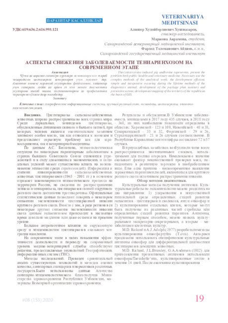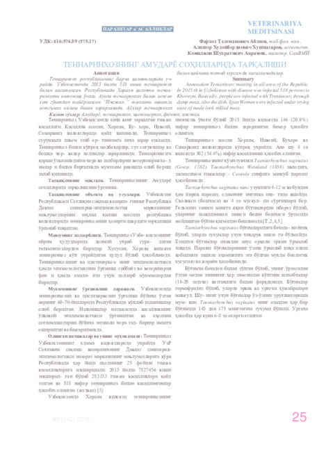 • Аннотация Собрание Тениаринхоза по всей территории Республики. В 2015-м в Узбекистане заболеванием заразилось 518 человек - в Хорезме. В основном люди заражаются тренианхозом через сырое мясо, а также блюда. Иджан Женщины заразились, попробовав приготовленный на вкус фарш