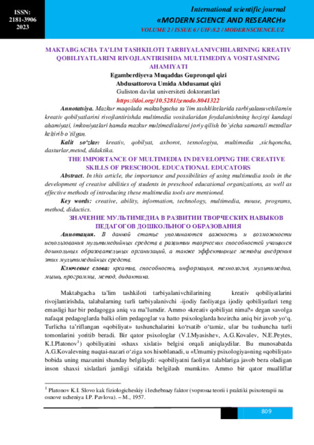 • В данной статье упоминаются важность и возможности использования мультимедийных средств в развитии творческих способностей учащихся дошкольных образовательных организаций, а также эффективные методы внедрения этих мультимедийных средств.