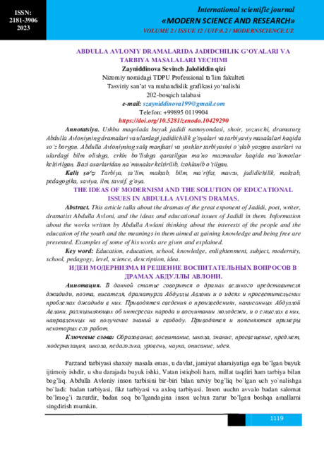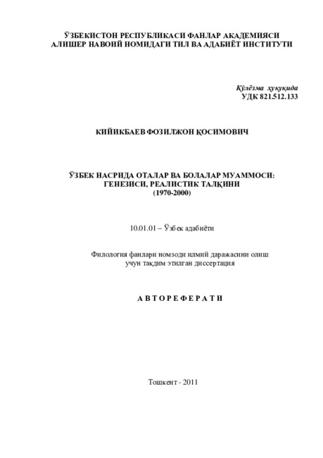 Цель работы: исследование проблем научных теоритических идей и образцов узбекской прозы на исторических и современных темах проблемы отцов и детей в предыдущей четверти прошлого века и в начале XXI века.