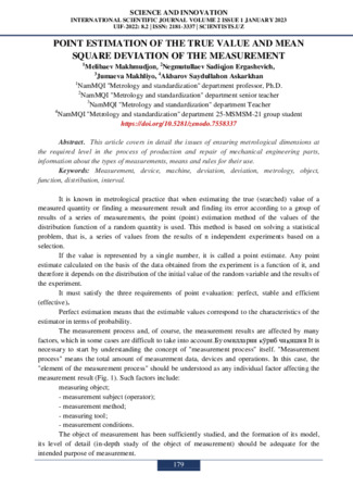 Ushbu maqolada mashinasozlik qismlarini ishlab chiqarish va ta'mirlash jarayonida metrologik o'lchamlarni talab darajasida ta'minlash masalalari, o'lchov turlari, vositalari va ulardan foydalanish qoidalari to'g'risidagi ma'lumotlar batafsil yoritilgan.