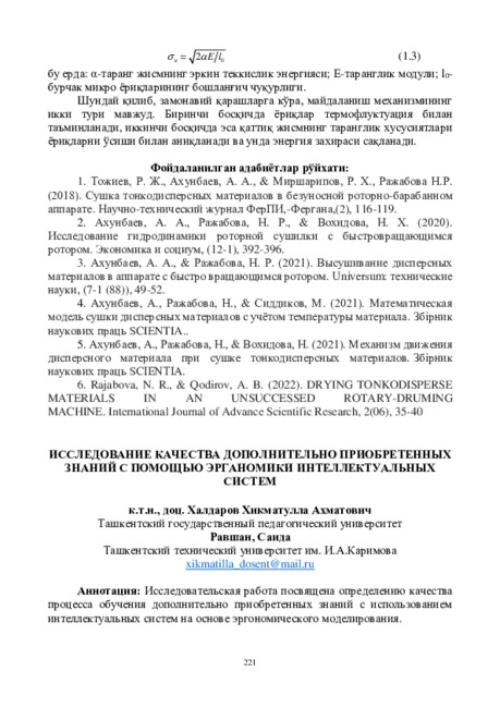 Исследовательская работа посвящена определению качества процесса обучения дополнительно приобретенных знаний с использованием интеллектуальных систем на основе эргономического моделирования.