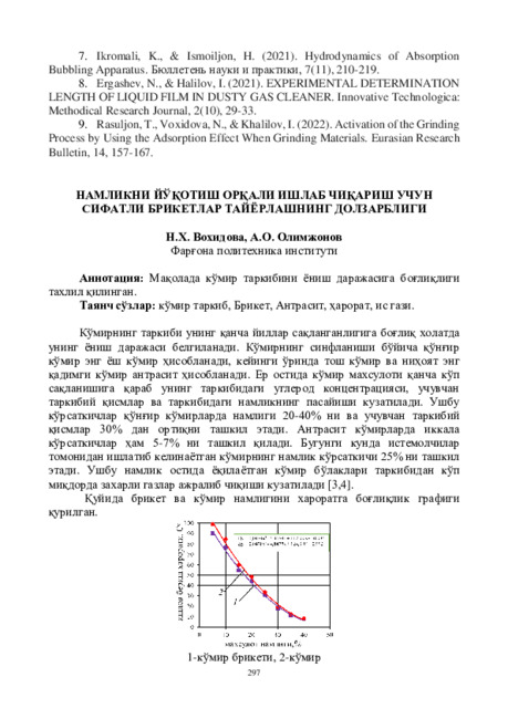 Мақолада кўмир таркибини ёниш даражасига боғлиқлиги тахлил қилинган.