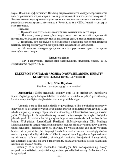 Ushbu maqolada umumiy o’rta ta’lim maktablari texnologiya fanini o‘qitishga qo‘yiladagan talablar va elektron vositalar orqali o‘quvchilarning kreativ kompetentligini rivojlantirish masalasi yoritib berilgan.