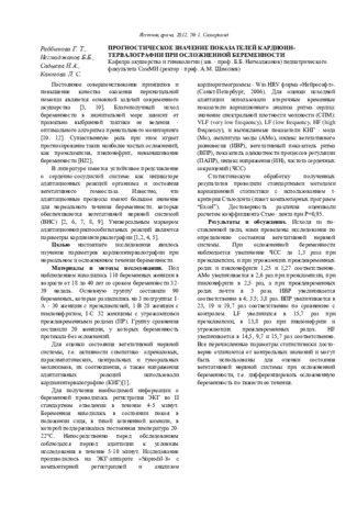 Клешеногов. С.А. Особенности нейровегетативной регуляции при нормальной и осложнённой беременно-