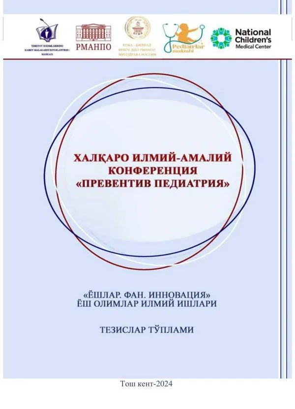 Тезислар туплами 2024 йил 17-19 апрель кунлари Тошкент шахрида булиб утган клиник ординаторлар ва ёш олимларнинг «Ёшлар. Фан. Инновация» номли «Превентив педиатрия» Халкаро илмий-амалий конференция натижалари асосида тузилган.