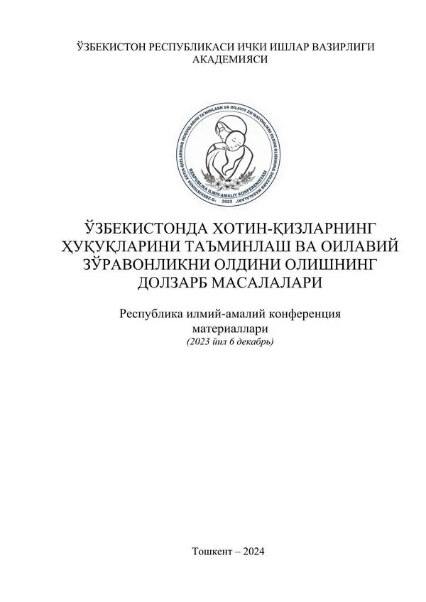 Тўпламдаги мақола ва тезисларда хотин-кизларнинг қуқуқларини таъминлаш ва оилавий зўравонликни олдини олиш, юртимизда хотин-қизларнинг ижтимоий-иқтисодий ва сиёсий фаоллигини ошириш, уларнинг маънавий ва интеллектуал салоҳиятини юксалтириш, саломатлигини мустаҳкамлаш, оила, оналик ва болаликни муҳофаза қилиш бўйича имкониятлар хамда хукуки|и кафолатларнинг яратилиши, мазкур сохада амалга оширилаётган ислоҳотларнинг муҳим йўналишлари, шунингдек, ушбу йўналишдаги миллий ва халқаро тажрибанинг долзарб муаммоларига доир масал алар ёритилган.