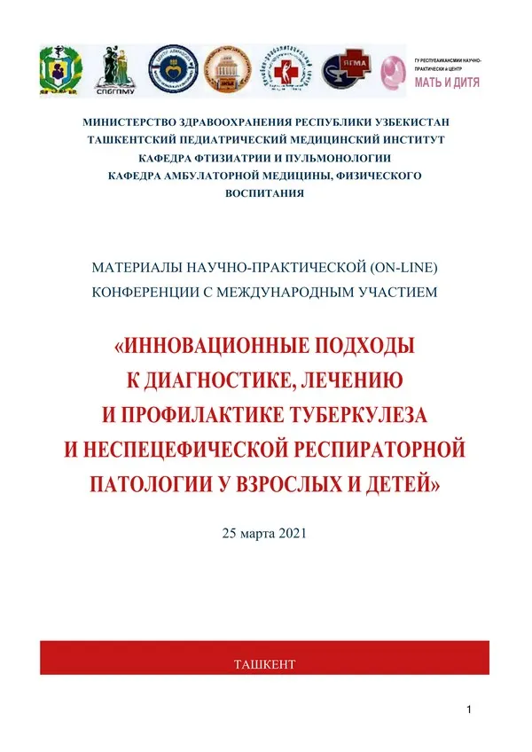 В сборнике представлены материалы научно-практической онлайн конференции с международным участием «Инновационные подходы к диагностике, лечению и профилактике туберкулеза и нсспсцсфичсской респираторной патологии у взрослых и детей», посвященной Году поддержке молодежи и укреплению здоровья населения (Ташкент, 25 марта 2021 г.). В сборнике изложены лекции и обзоры ведущих ученых по актуальным вопросам фтизиатрии и пульмонологии, представлены материалы по эпидемиологии, клиники, диагностике, лечению туберкулеза и неспецифической патологии бронхолегочной системы у взрослых и детей.