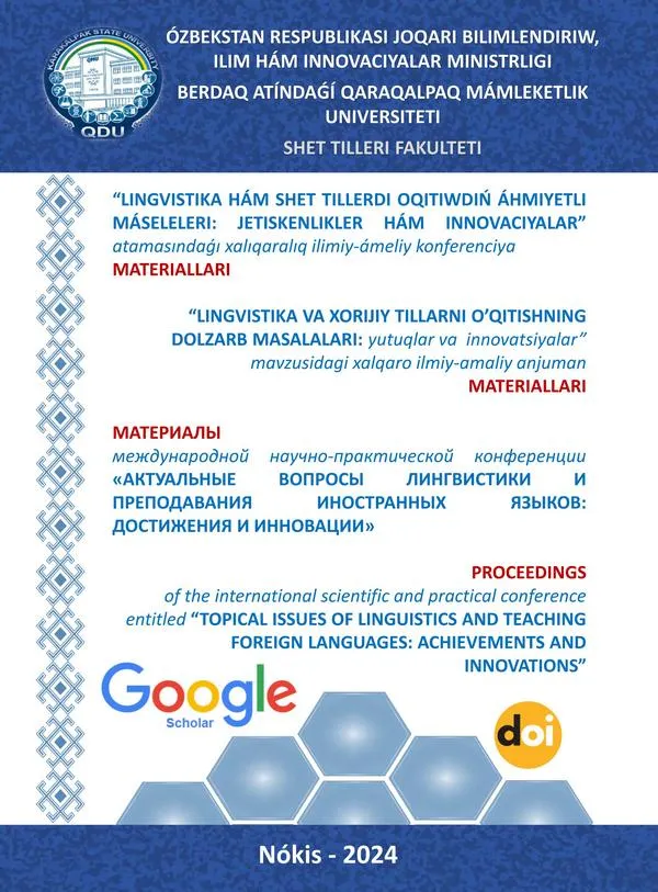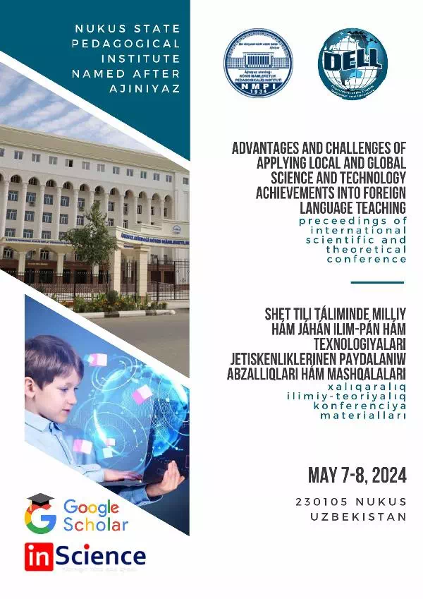 «Shet tili taliminde milliy ham jahan ilim-pan ham texnologiyalan jetiskenliklerinen paydalamw abzalliqlan ham mashqalalan» atamasindagi xahqaraliq ilimiy-teonyaliq konferenciya materiallan toplaminda Ozbekistan Respublikasi ham sirt el joqan oqiw onnlan professor-oqitiwshilan, ulken ilimiy xizmetkerler, izleniwshiler, magistrantlar, talabalar, ilimiy izertlew instituti ilimpazlan, akademiyaliq licey, kasip-oner kollejleri ham uliwma orta bilim beriw mektepleri oqitiwshilanmn miynetleri jamlengen. Sonday-aq shet tillerin oqitiwdin usullari ham innovacion texnologiyalanna baylanisli aktual maseleler, jana ilimiy koncepciyalar ham mashqalalar boyinsha materiallar toplangan.