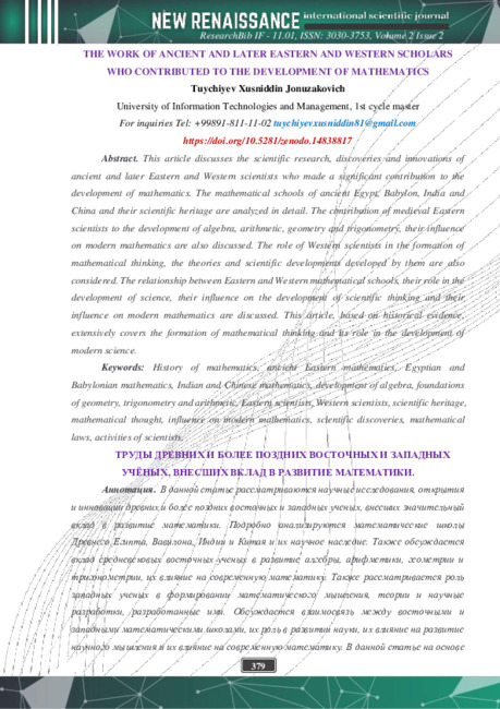 и инновации древних и более поздних восточных и западных ученых, внесших значительный