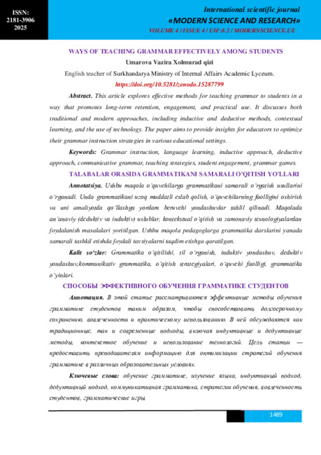 Abstract. This article explores effective methods for teaching grammar to students in a
