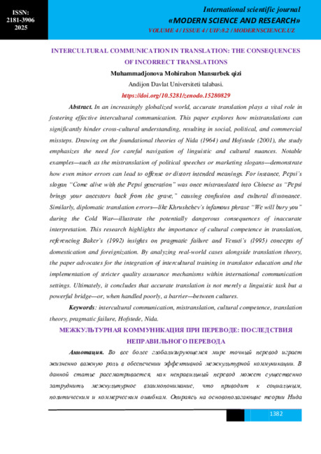 МЕЖКУЛЬТУРНАЯ КОММУНИКАЦИЯ ПРИ ПЕРЕВОДЕ: ПОСЛЕДСТВИЯ