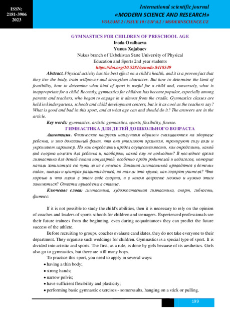 GYMNASTICS FOR CHILDREN OF PRESCHOOL AGE