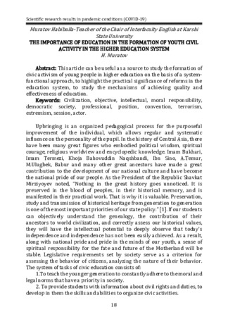 THE IMPORTANCE OF EDUCATION IN THE FORMATION OF YOUTH CIVIL