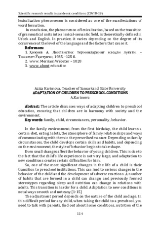 The article discusses ways of adapting children to preschool education, ensuring that children are in harmony with society and the environment