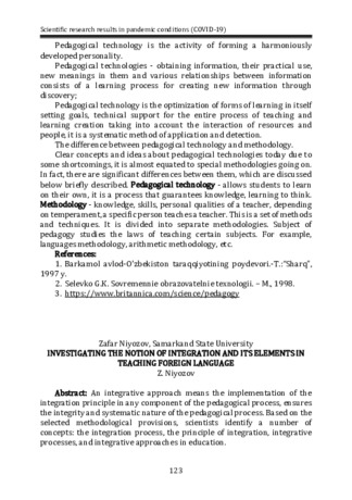 An integrative approach means the implementation of the integration principle in any component of the pedagogical process, ensures the integrity and systematic nature of the pedagogical process. Based on the selected methodological provisions, scientists identify a number of concepts: the integration process, the principle of integration, integrative processes, and integrative approaches in education