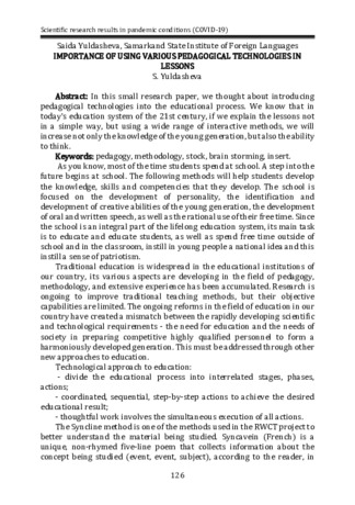 In this small research paper, we thought about introducing pedagogical technologies into the educational process. We know that in today's education system of the 21st century, if we explain the lessons not in a simple way, but using a wide range of interactive methods, we will increase not only the knowledge of the young generation, but also the ability to think