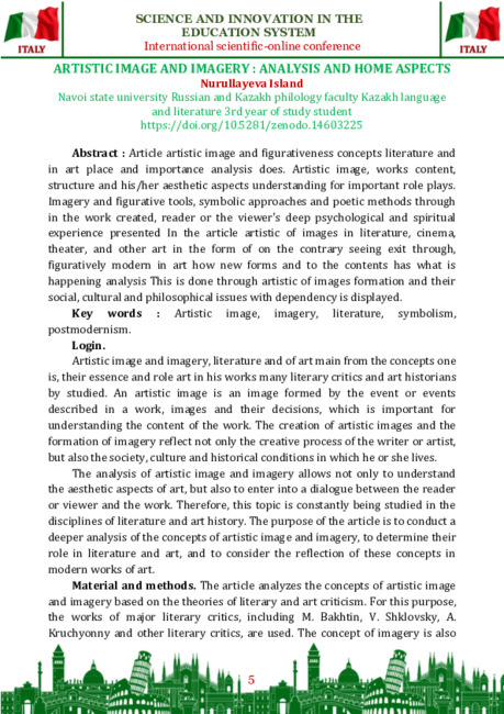 ARTISTIC IMAGE AND IMAGERY : ANALYSIS AND HOME ASPECTS