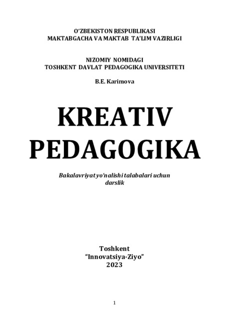 o‘quv adabiyoti bo`lib, unda “Kreativ pedagogika” fanini